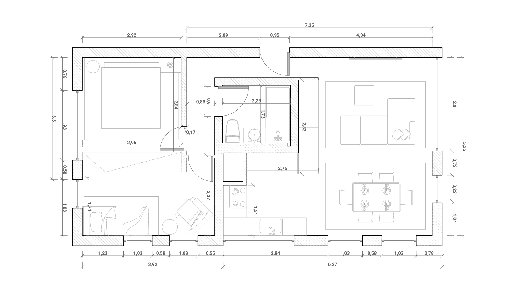 Thoughtfully designed with a master bedroom and a versatile additional space designed for multiple uses, such as a guest area, office, or private retreat. A sleek, spa-like bathroom enhances the atmosphere of relaxation.